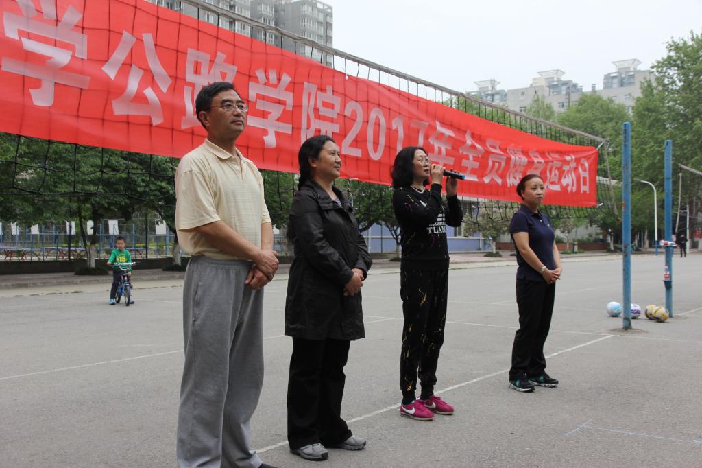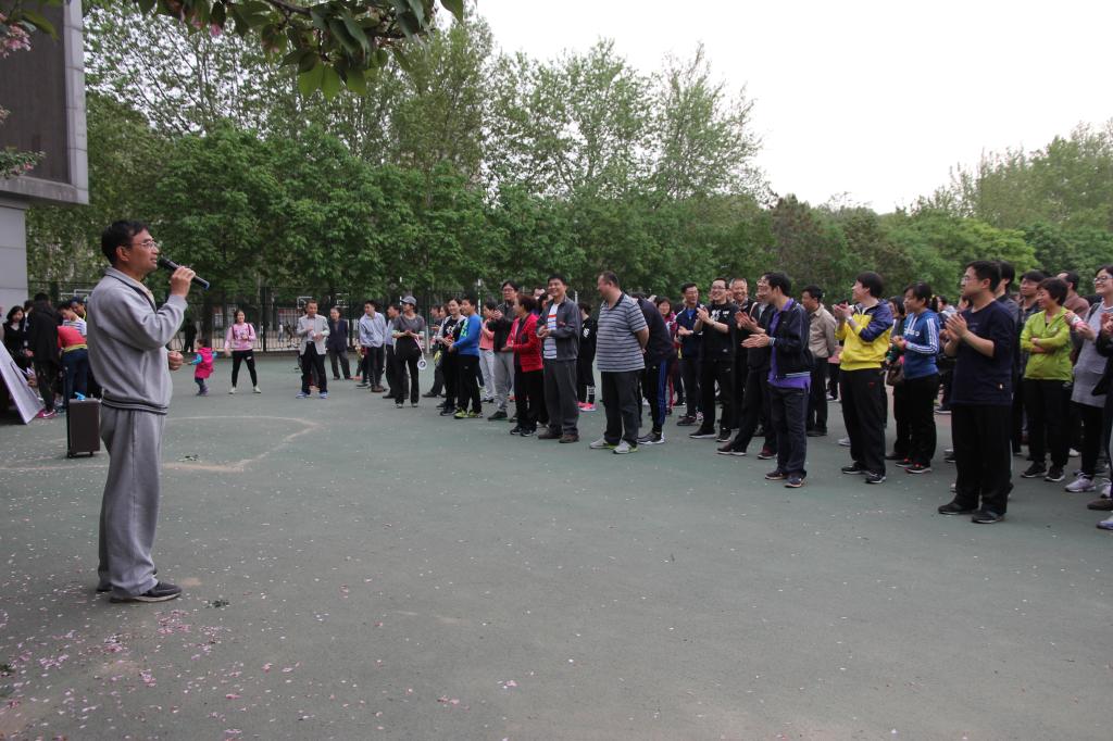 为全面落实《全民健身计划2016-2020》,以形成健康的工作生活方式为重点,以增强全院教职工的身心健康为核心,推崇“运动是良医”的健身理念,为学院全体教职工在争创“双一流”大学进程中奠定良好的体质和愉悦的心态,全面推进学院健康运动的深入开展,增强教职工的身体素质和凝聚力,在公司党委领导下,院工会组织全院200多名教职工于2017年4月15日在校本部体育场开展全员健身运动日活动,校工会主席简林莎教授出席开幕式并讲话。